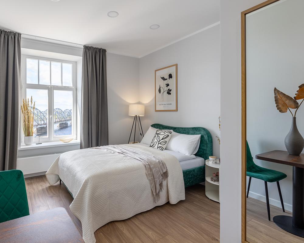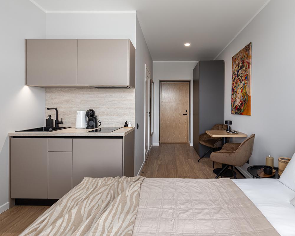 Atsevišķos ēkas (1., 2., un 3.) stāvos griestu augstums ir 3,3–3,6m un dzīvokļi ir aprīkoti ar papildu gultasvietām otrajā līmenī jeb tā saucamajiem “loftiem”, ļaujot 20 m² dzīvoklī izmitināt četrus viesus.