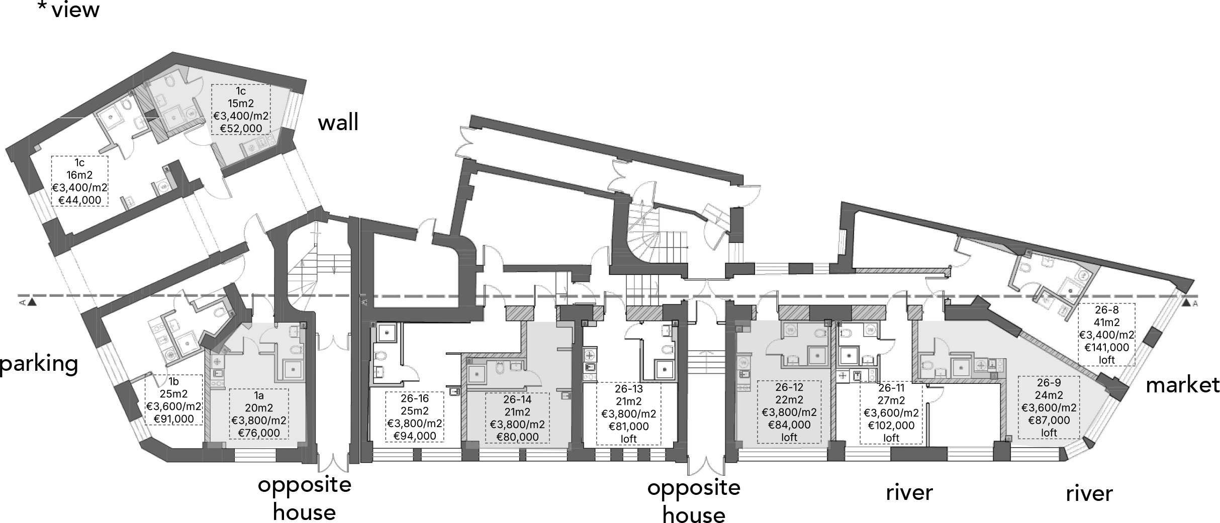 Gaišs, moderns un pilnībā aprīkots studio tipa dzīvoklis ar skatu uz Daugavu. Interjerā izmantotas mēbeles un virtuves iekārtas, kas ražotas Latvijā. Dzīvokļi pieejami platībā no 15 līdz 30 m².