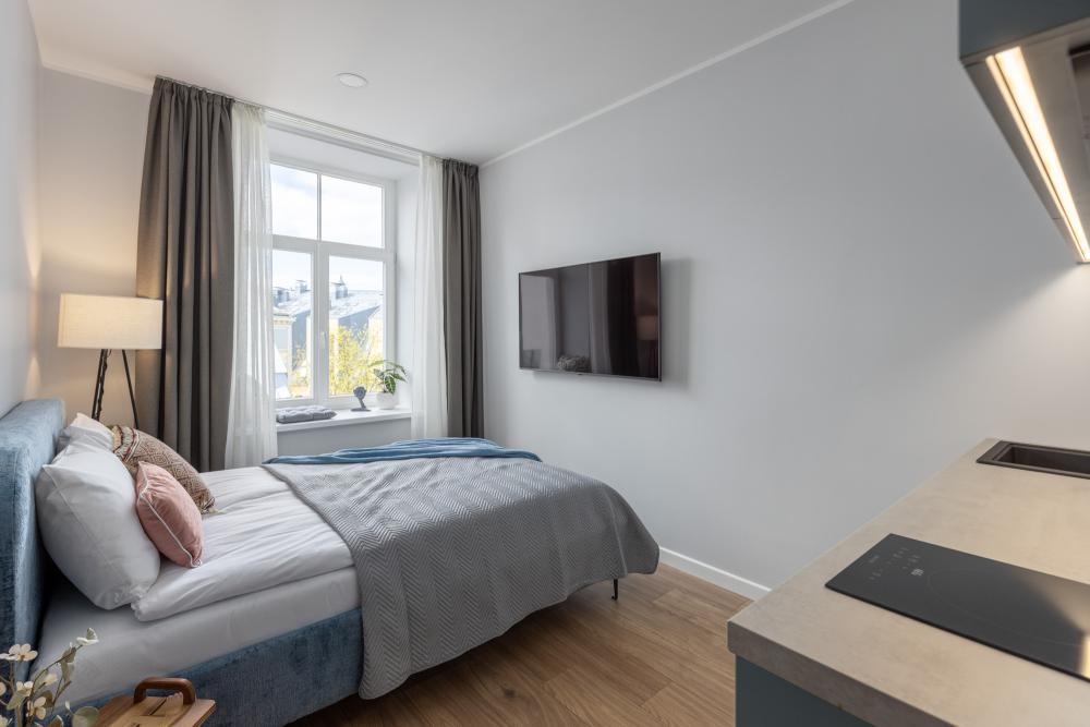 Gaišs, moderns un pilnībā aprīkots studio tipa dzīvoklis ar skatu uz Daugavu. Interjerā izmantotas mēbeles un virtuves iekārtas, kas ražotas Latvijā. Dzīvokļi pieejami platībā no 15 līdz 30 m².