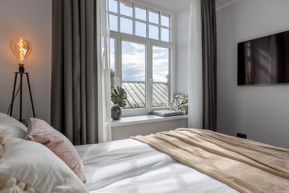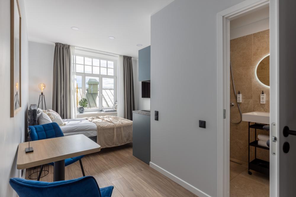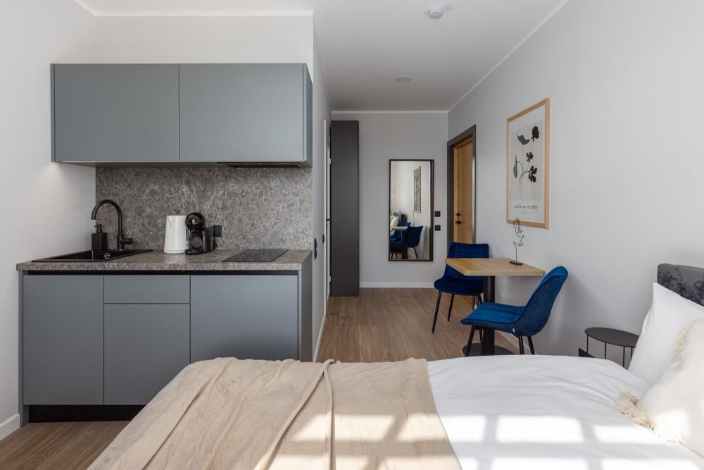 Gaišs, moderns un pilnībā aprīkots studio tipa dzīvoklis ar skatu uz Daugavu. Interjerā izmantotas mēbeles un virtuves iekārtas, kas ražotas Latvijā. Dzīvokļi pieejami platībā no 15 līdz 30 m².