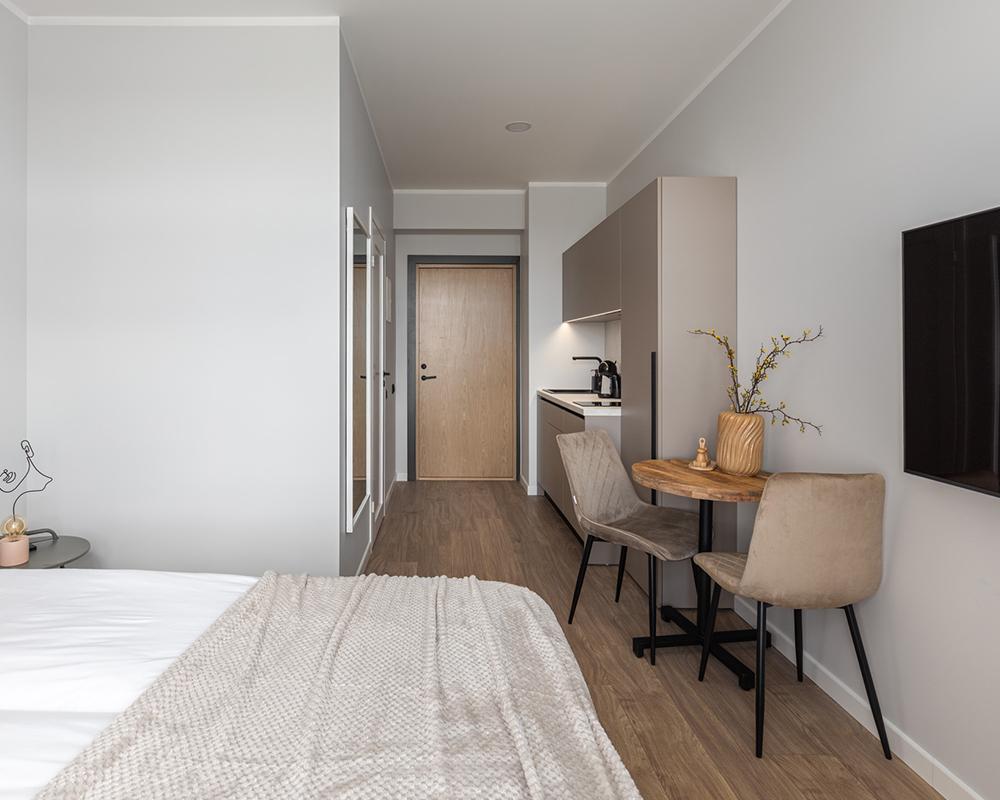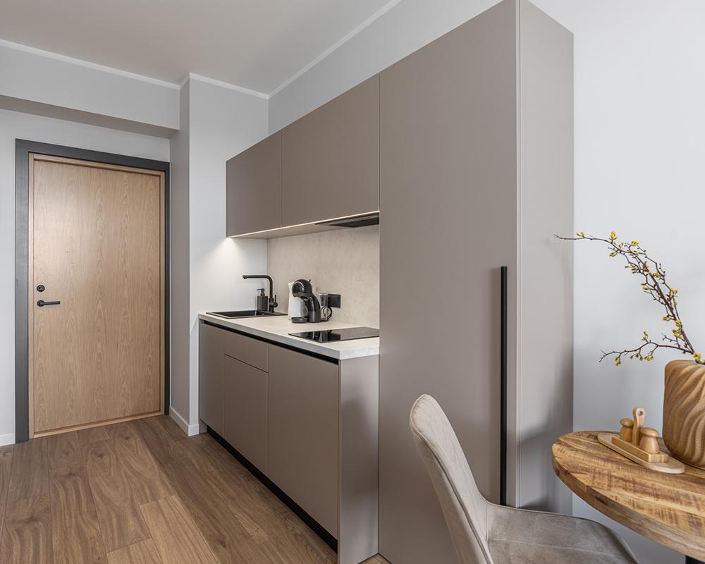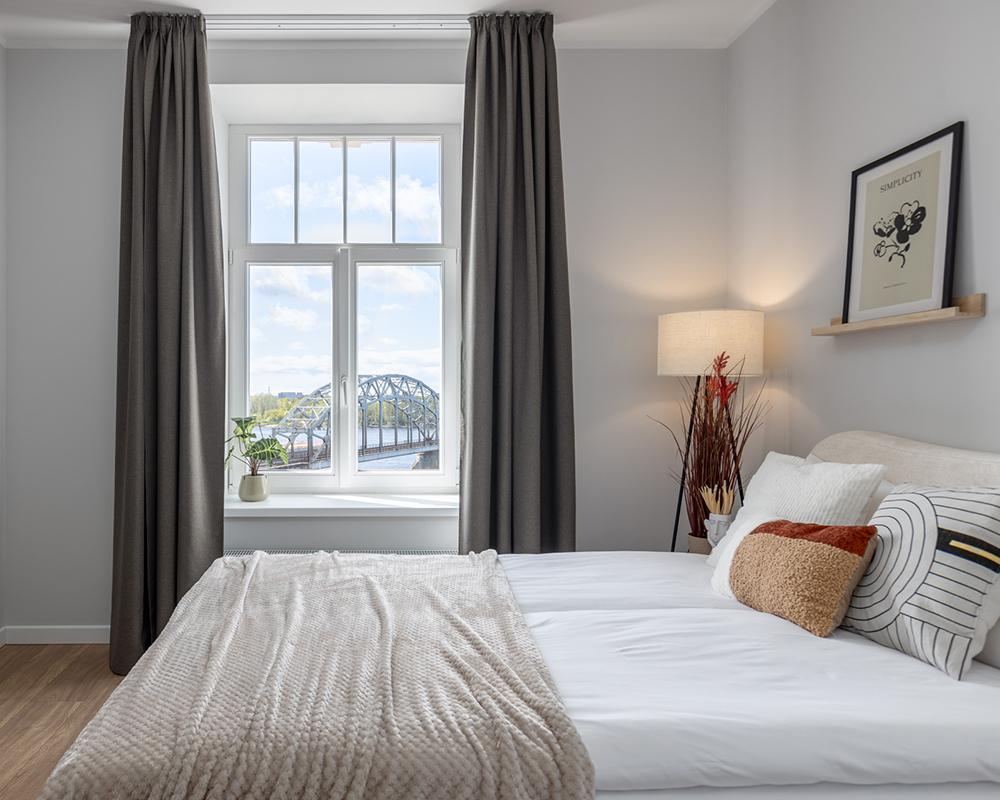 Gaišs, moderns un pilnībā aprīkots studio tipa dzīvoklis ar skatu uz Daugavu. Interjerā izmantotas mēbeles un virtuves iekārtas, kas ražotas Latvijā. Dzīvokļi pieejami platībā no 15 līdz 30 m².